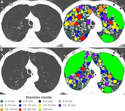 The group analyzed data from 108 participants in the Korean Obstructive Lung Disease cohort study from June 2005 to October 2013 who completed baseline and six-year follow-up CT with identical protocols. Significantly, they used deep learning–based software to identify and track the holes based on changes in diameter in 2-mm increments.
